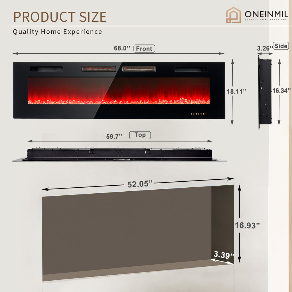 【Fast Heating & Safe Design】 The supplemental zone heating can reach up to 400 square feet, and the room will be warm in a few minutes. Besides, the recessed / wall mounted electric fireplace has a thermostat that automatically monitors the temperature of the plug to ensure its safety. Don't worry if you fall asleep without turning off the heater.