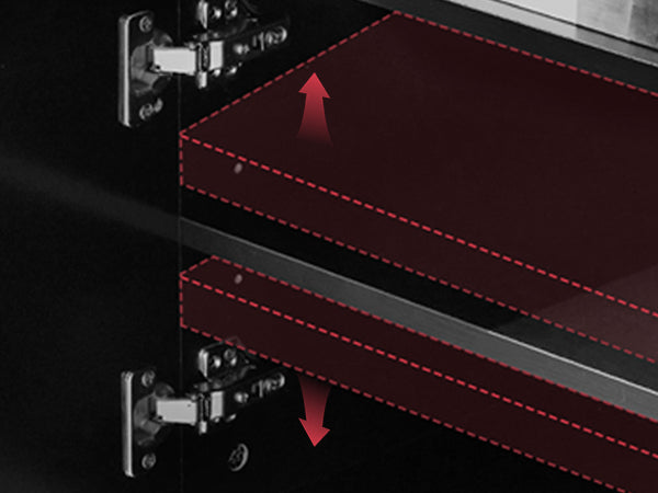 Double-layer cabinets offer space for entertainment gear, while cable holes keep wires organized for a cleaner look. Handles design offers much convenience to open the cabinets