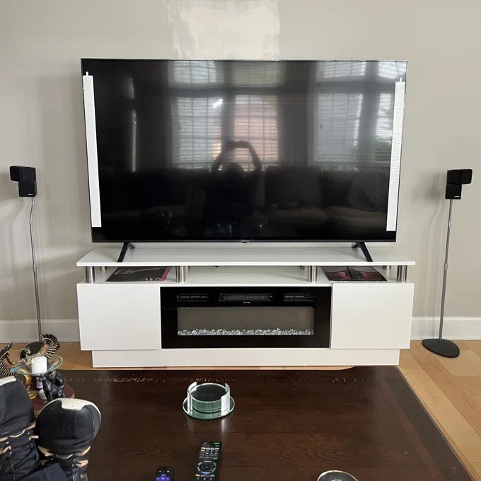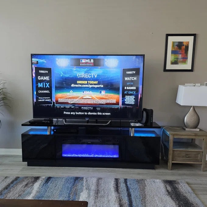 70"/80" 2 Tiers Luxury Modern High Gloss Fireplace TV Stand with Doorknob