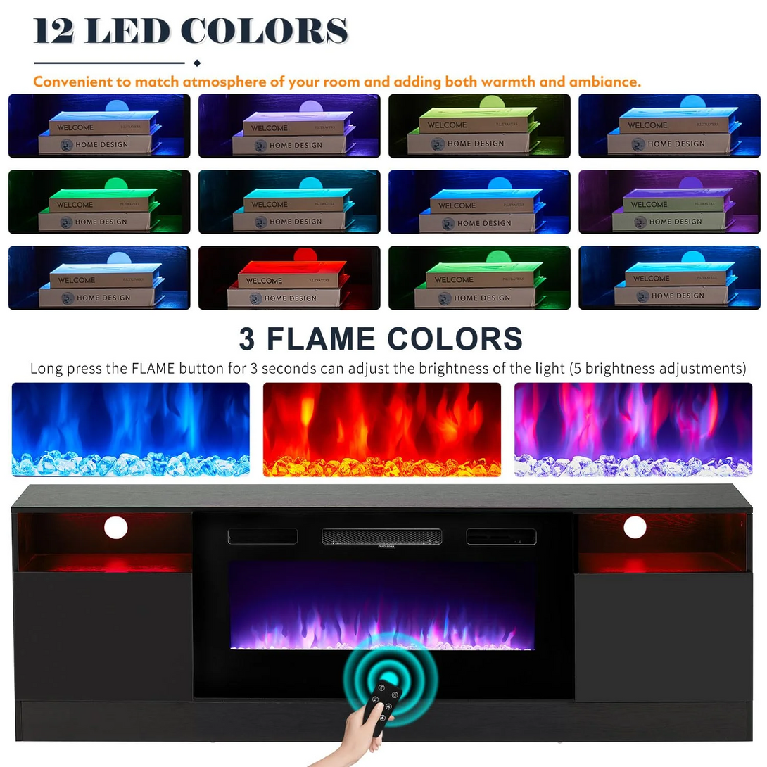 - 【Fireplace TV Stand】Combine a TV Stand with a 36" electric fireplace. TV Console Table for TVs Up to 80 Inches for a comfortable viewing experience while keeping TVs stable. The modern wide electric fireplace features 12 changeable realistic flame colors & 5 levels of dimmer. The LED kit included 12 changeable colors and a total of 36 kinds of color combinations to customize space and atmosphere.