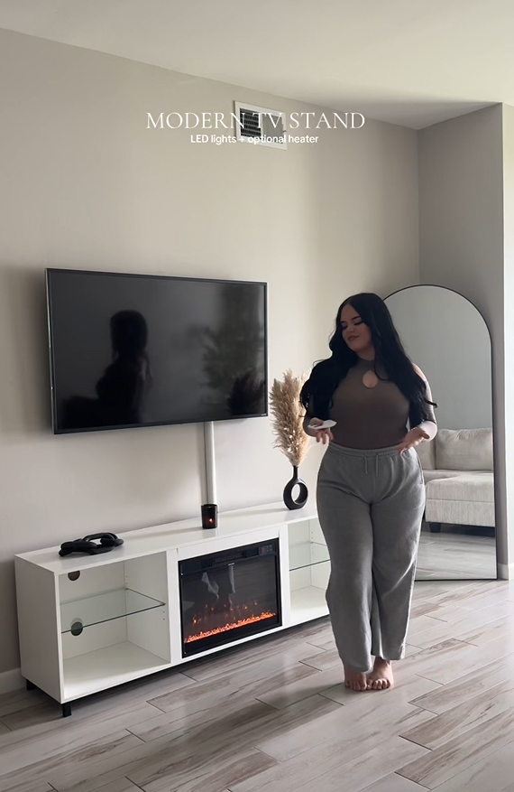 Combine a 70"L × 13.8"W × 23"H TV Stand with a 36" electric fireplace. TV Console Table for TVs Up to 80 Inches for a comfortable viewing experience while keeping TVs stable.