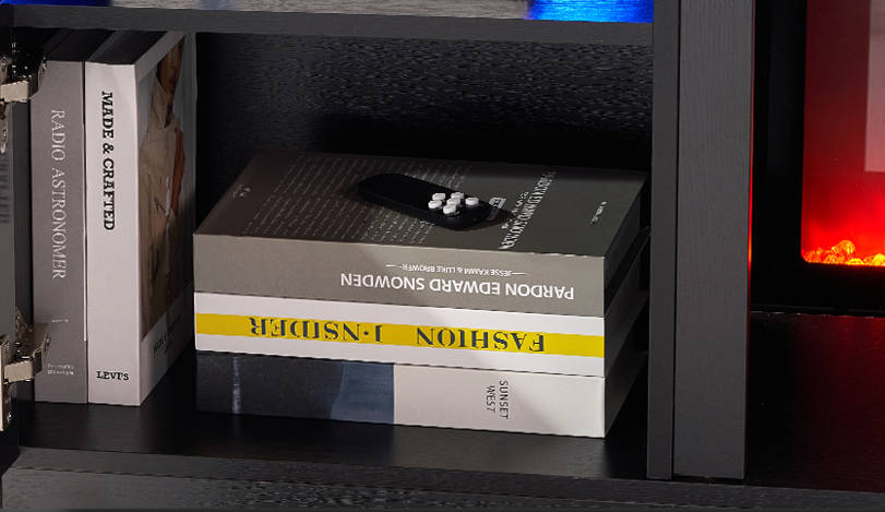 This indoor furniture includes a 36” electric fireplace, it can heat the area up to 400 square feet. Meanwhile, the temperature can be adjusted from 62℉ to 82℉ or 17℃-27℃ according to your heating needs. The overheat protection and CSA&ETL certification ensure your safety. This LED flame technology requires less energy and features a timer for auto-shutoff and can be set up to 8 hours.