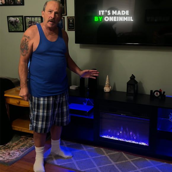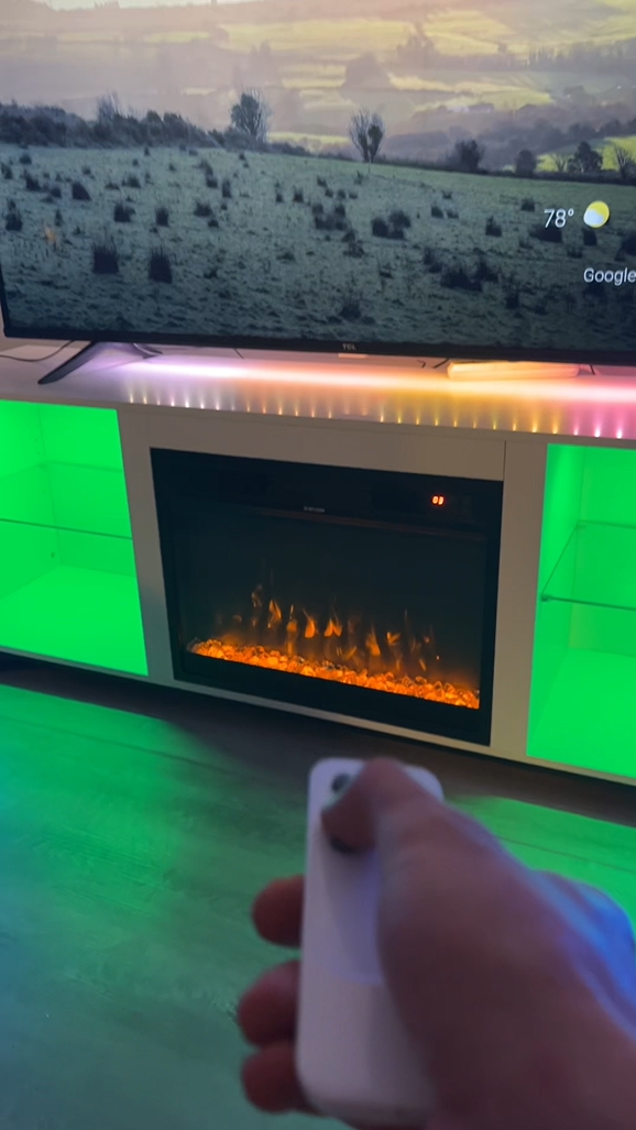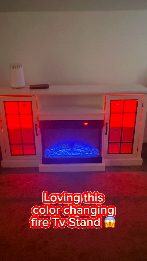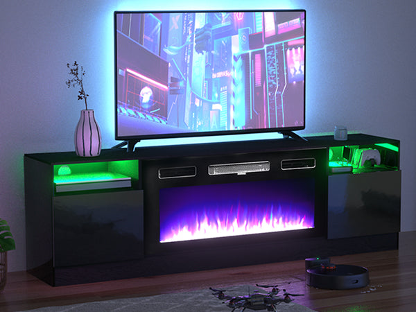 Combine a 70" L × 13.8" W × 23" H TV Stand with a 36" electric fireplace. TV Console Table for TVs Up to 80 Inches for a comfortable viewing experience while keeping TVs stable. 36 inches modern wide electric fireplace features 3 changeable realistic flame color& 5 levels dimmer. LED kit included 12 changeable colors and a total 36 kinds of color combinations to customize space and atmosphere.