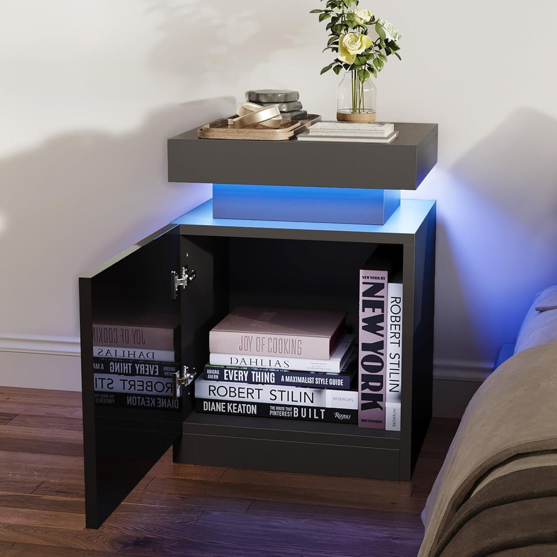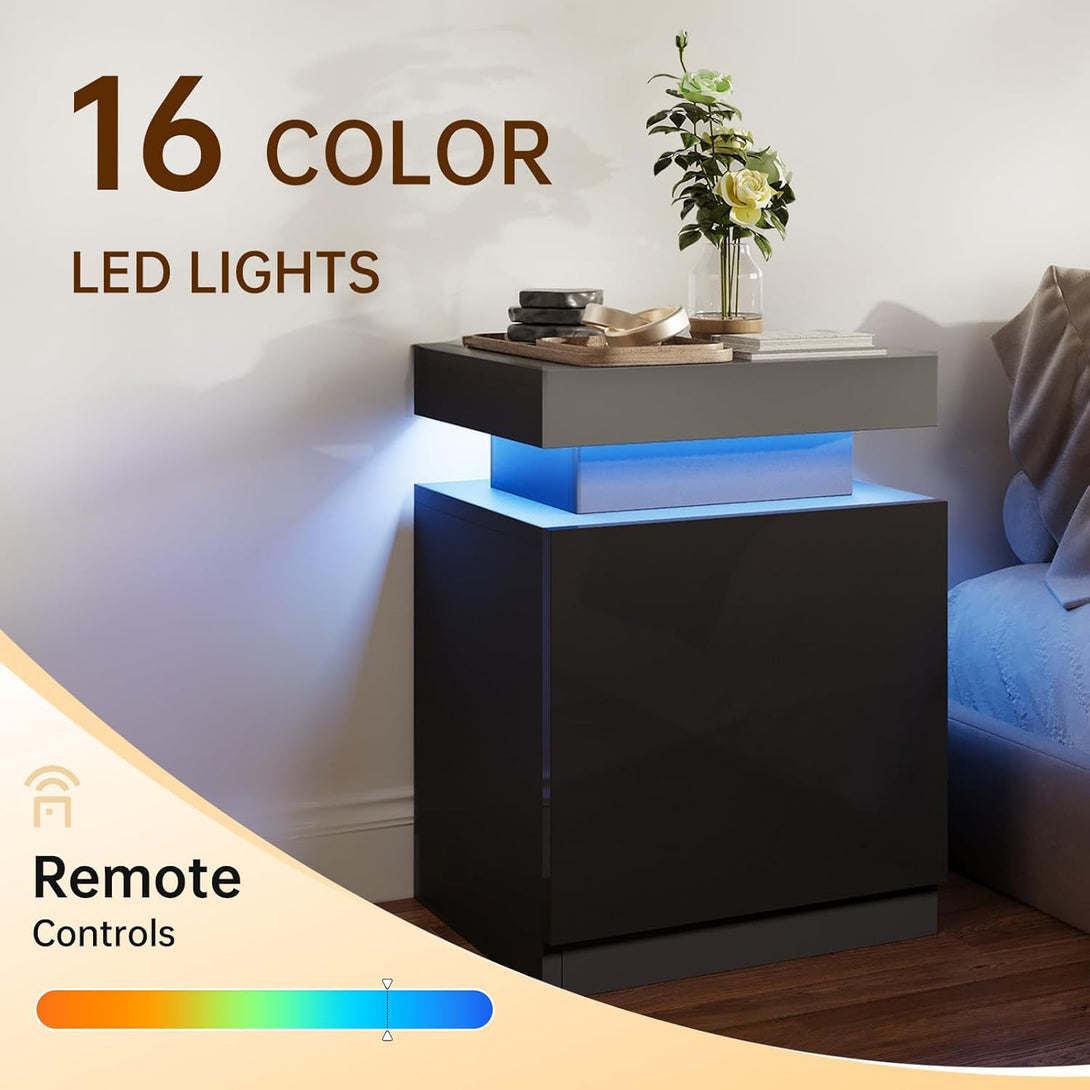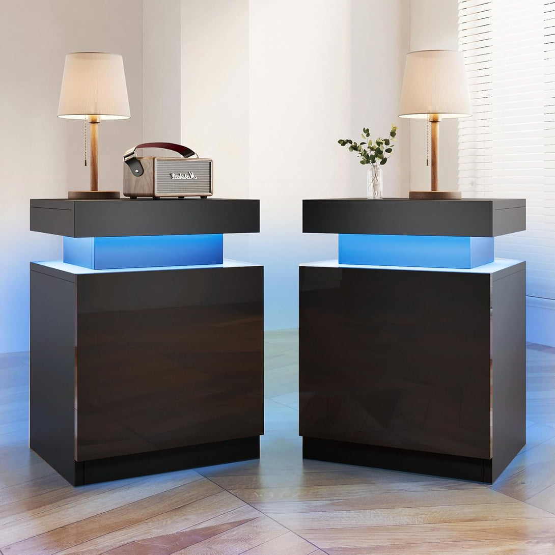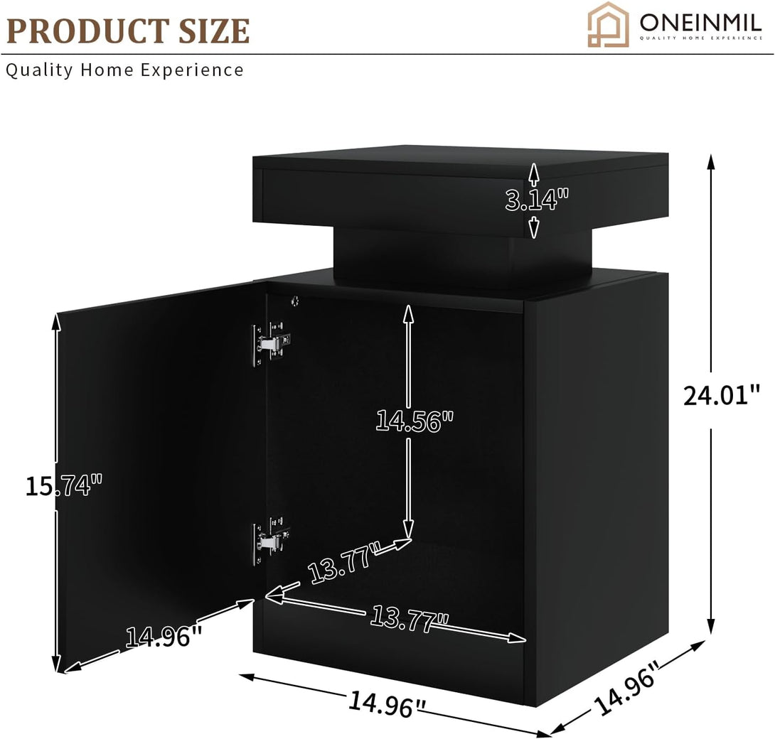 Oneinmil Nightstand Set of 2 with LED Lights,Night Stand with Storage Cabinet for Bedroom,Bedside Table with LED, Black