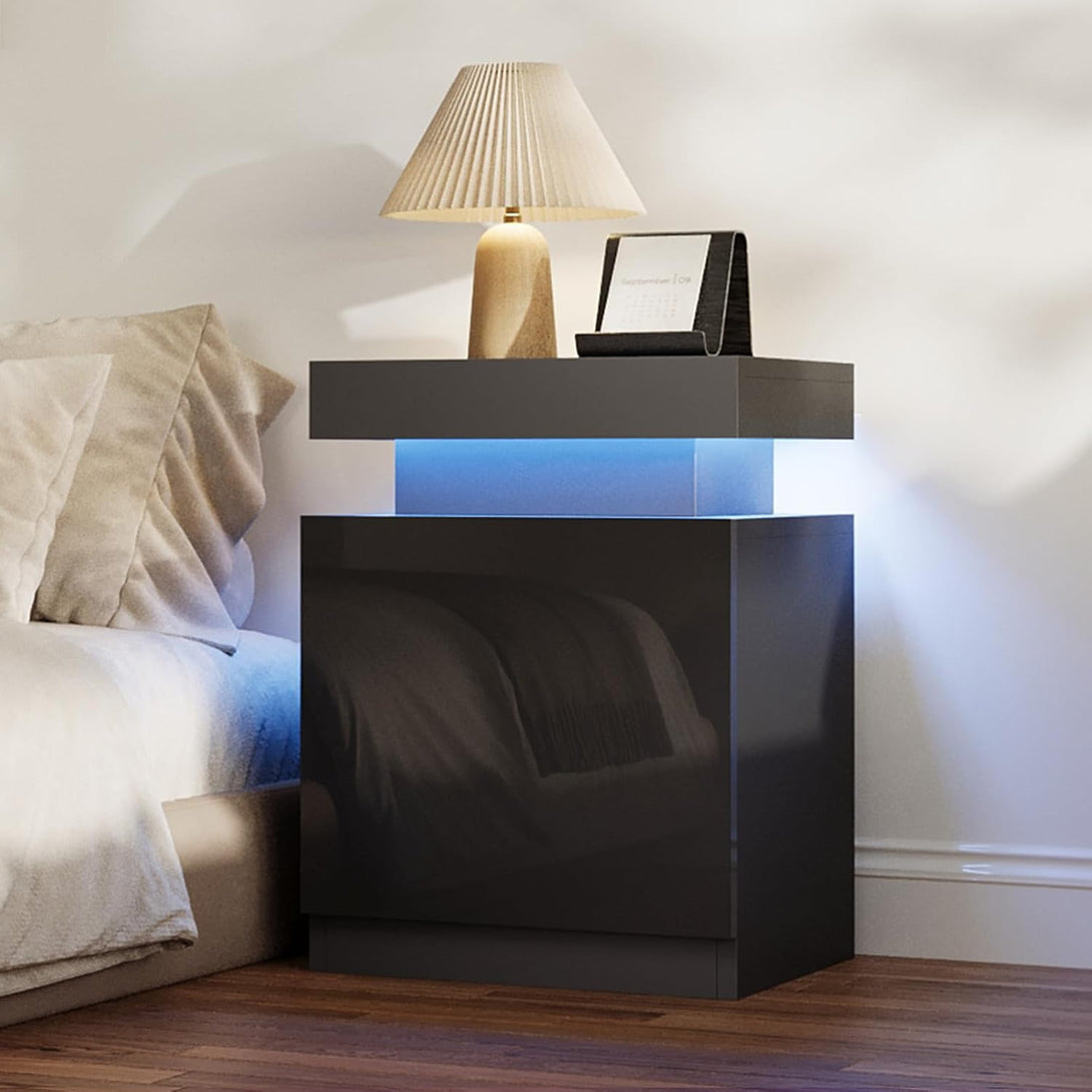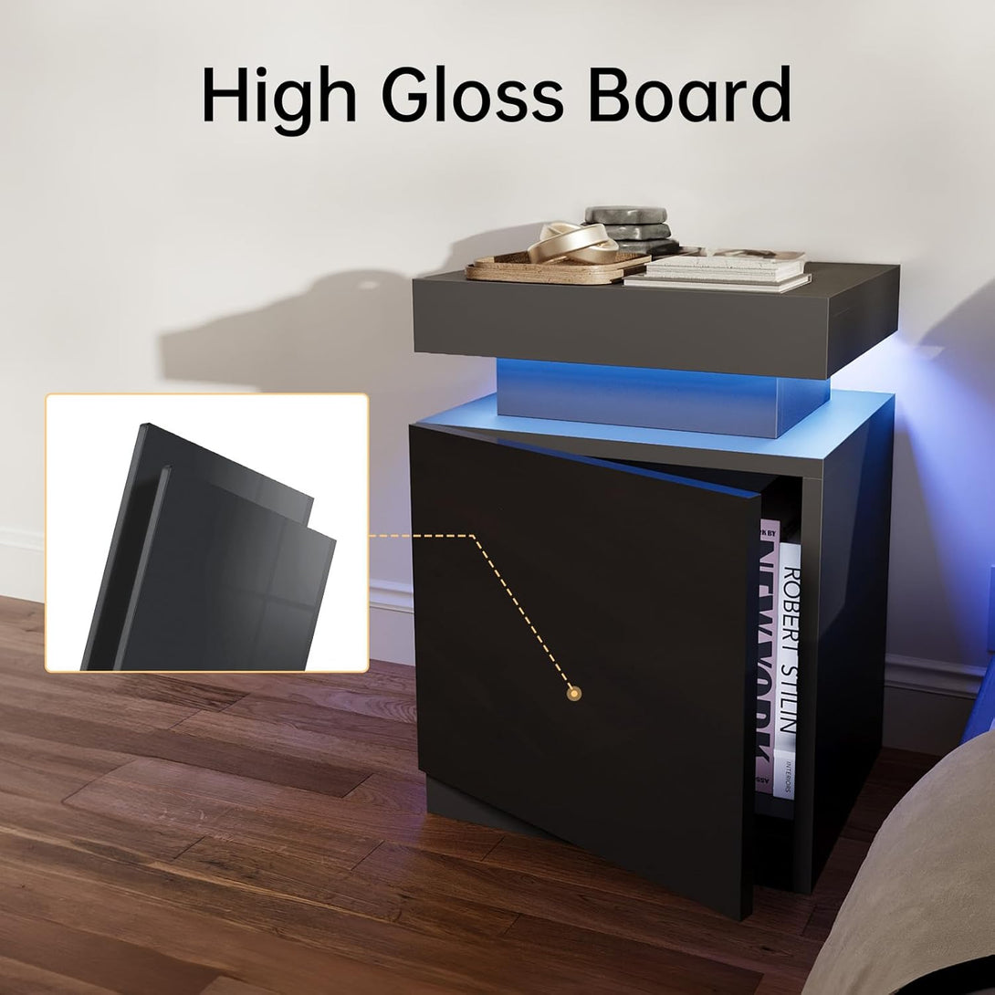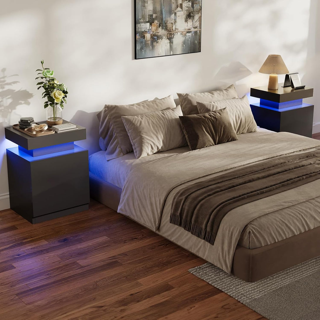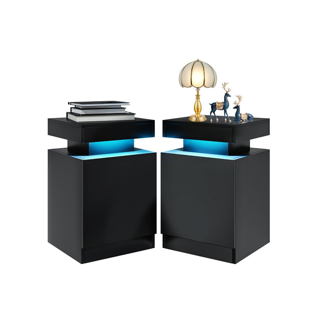 Oneinmil Nightstand Set of 2 with LED Lights,Night Stand with Storage Cabinet for Bedroom,Bedside Table with LED, Black